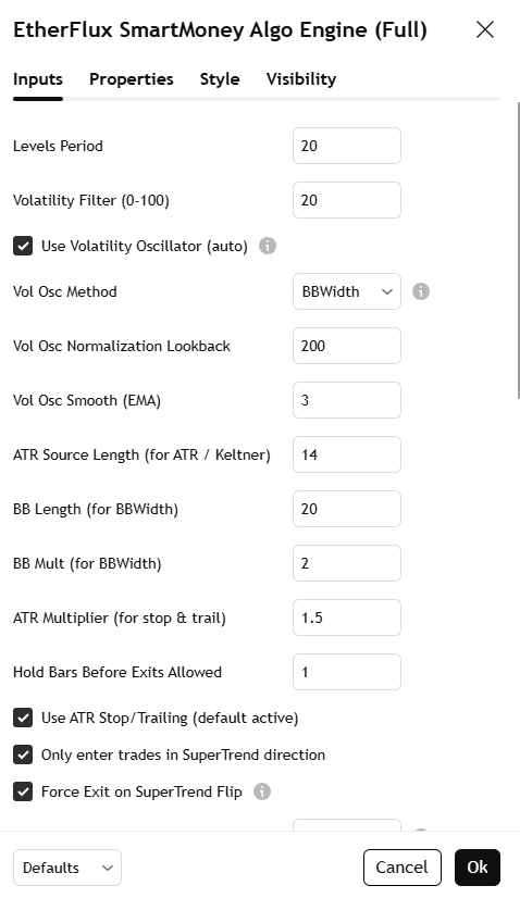 - Volatility-Adaptive Engine with BBWidth oscillator and Keltner channels.